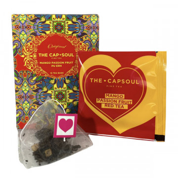 CapSoul PUERH MANGO MARACUJA sypaný černý čaj v pyramidách, 15 sáčků
