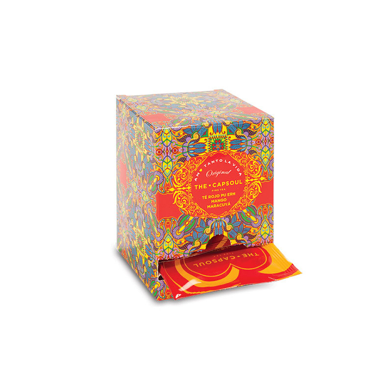Dvakrát fermentovaný černý čaj Pu Erh tvoří intenzivní podklad tohoto skvělého nálevu, na který potom navazuje tropické ovoce maracuja a mango, jejichž aroma je přímo omamné a spolu se šťavnatostí přidaného kandovaného manga, dělají tento čaj nezapomenutelným. Doba louhování 3 minuty.